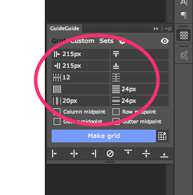 Once you've installed the GuideGuide extension, you can use it by going to Window > Extensions > GuideGuide. This will open up the GuideGuide options dialogue. Fill it in with the options shown in the screenshot below.