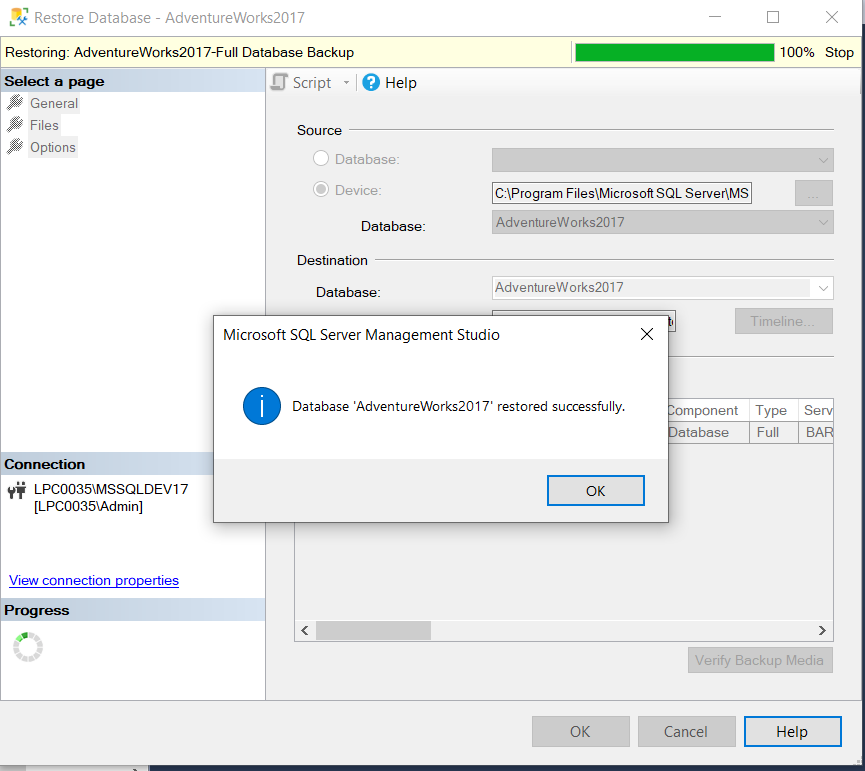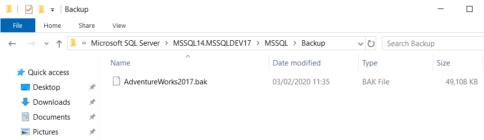 If the backup file AdventureWorks2017.bak is not in the default backup folder then bring the AdventureWorks2017.bak here. If you don’t do this, then backup may fail for security reason.