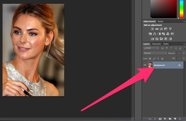 Once your image has opened, it will automatically be set in a locked layer named ‘Background’ with a padlock icon on it