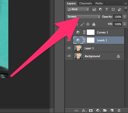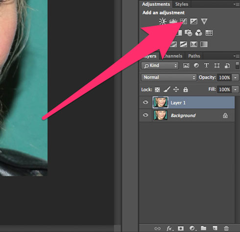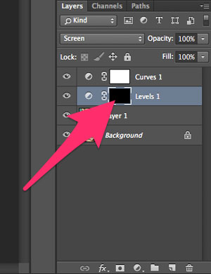 Now click on your ‘Layer 1’ layer again, and then click on the Levels icon in the Adjustments panel to add a Levels adjustment layer below your Curves layer
