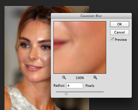 Make sure the ‘Preview’ box is ticked and choose a blur radius that makes the skin in your photo look smooth but not too blurry (if you’re using the example photo we’ve linked to in Step 1, a blur radius of 4 pixels may be best) - then click ‘OK’
