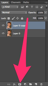 Now look at your Layers panel again to find the ‘Add Vector Mask’ icon and click on it to add a mask to your top layer
