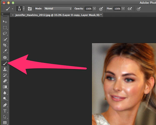 Make sure this new mask is selected (click on it to select it, if you need to), and then look to the left-hand side of the screen to find the brush tool icon in the menu there